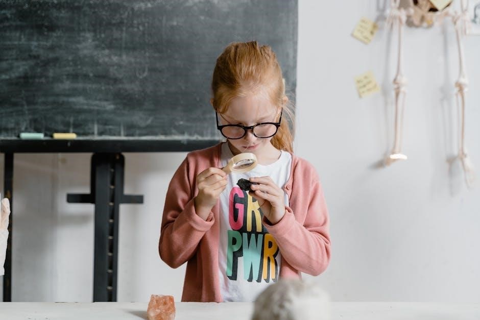 Worksheets explore wave behavior, including reflection, transmission, and interference, often with diagrams to sketch reflected and transmitted waves, aiding comprehension.